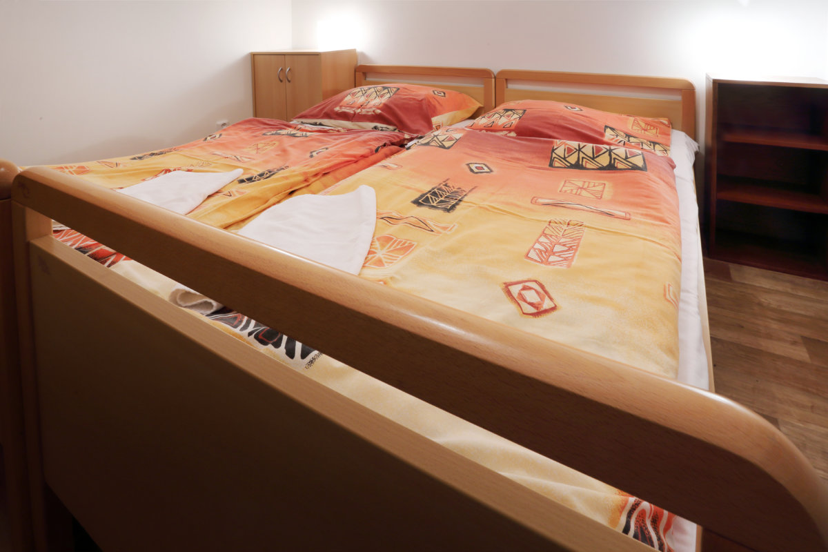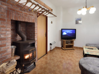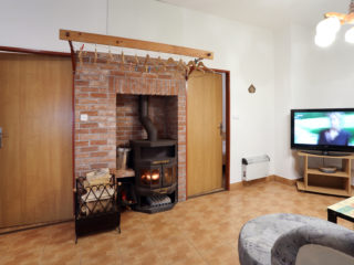 Im Appartement sind zwei getrennte Schlafzimmer (2 und 4 Betten), ein Wohnraum mit einer Kochnische, ein Badezimmer mit einer Duschecke, eine Toilette und ein selbstständiger Raum mit der anderen Toilette. In der Kochnische befinden sich ein voll ausgestatteter Küchenblock (Kühlschrank, Sparherd mit dem Backofen, Schnellkochkanne, Mikrowelle und grundlegendes Kochgeschirr) und ein großer Küchentisch, eine Eckbank mit Stühlen. Ein imaginärer Teiler zwischen dem Wohnraum und dem Speisezimmer ist ein dominanter Kaminofen, der nicht nur diesen großen Raum beheizt, sondern mit Hilfe der Belüftungsanlage auch beide Schlafzimmer und das Badezimmer. Über diesem Ofen gibt es ein geräumiges Hängelager zum Trocknen von einer großen Menge nasser Kleidungsstücke. Falls die Gäste keine Lust haben, im Ofen zu heizen, gibt es direktbeheizte Körper in allen Räumen. Im Wohnraum befinden sich ein Fernseher und eine große Sitzgarnitur, die zum Doppelbett ausgezogen werden kann.